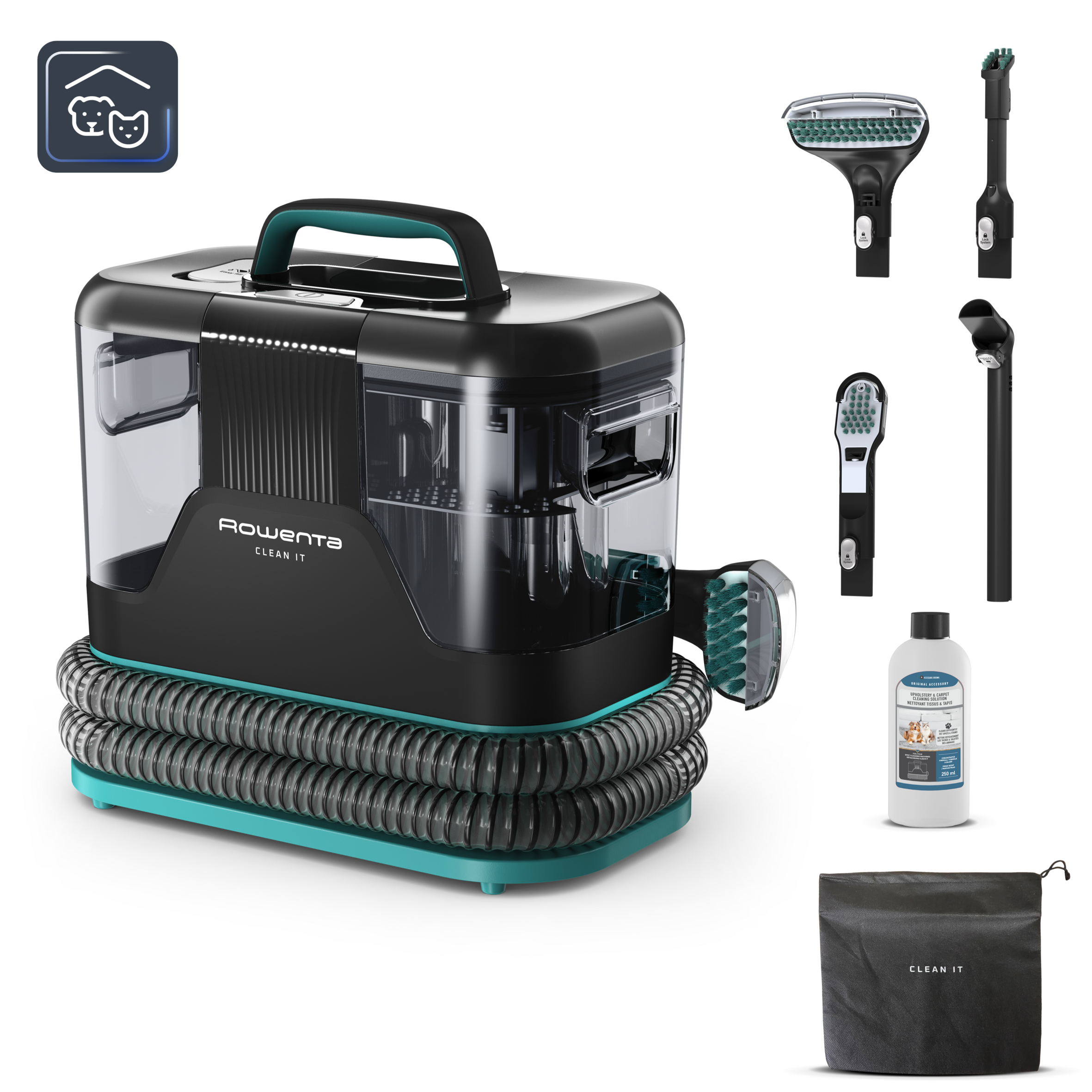 Clean It de Rowenta, Aspirador de tapicerías, Limpieza rápida de derrames y manchas, Hasta 13,5 kPa, 750 W, Incluye sistema de autolimpieza