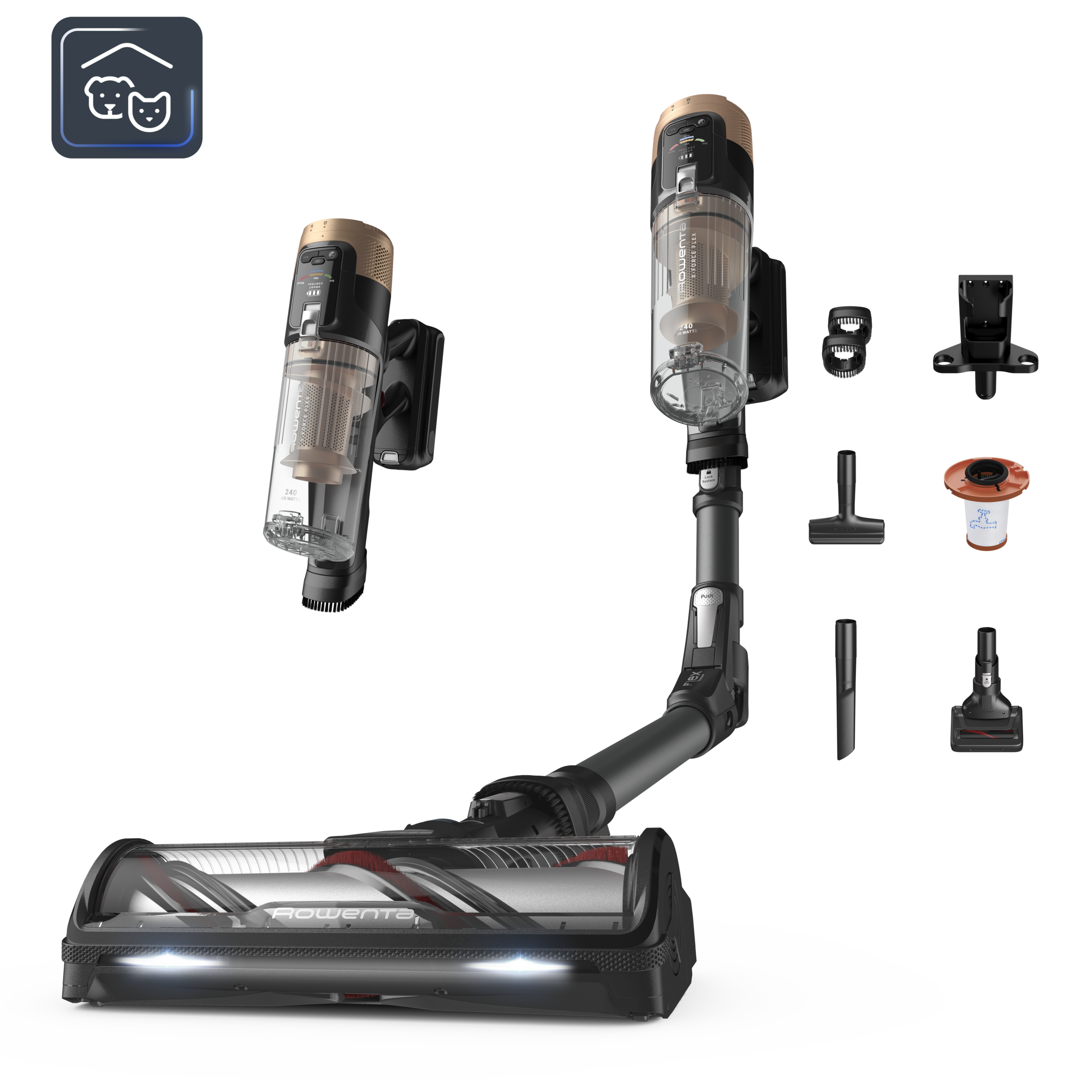 Limpieza y planchado sin esfuerzo con el Promo Pack X-Force Flex 14.60 Animal Care + Freemove Force de Rowenta.