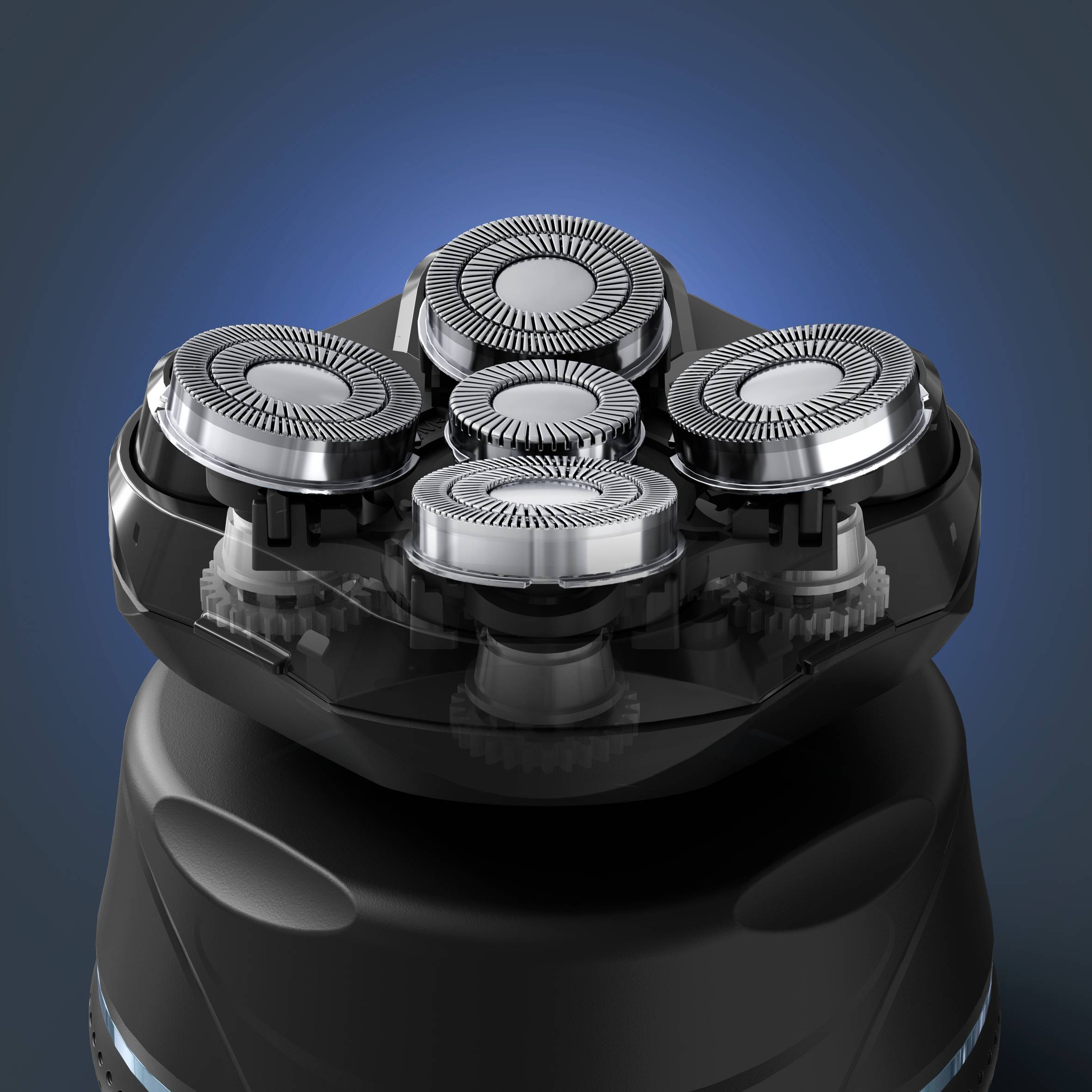 Afeitadora de Cabeza Barber Experience 5 cabezales con cuchillas de recubrimiento de titanio, apura hasta 0,1 mm, autonomía de 80 min, resistente al agua, cuchillas flexibles, neceser de viaje