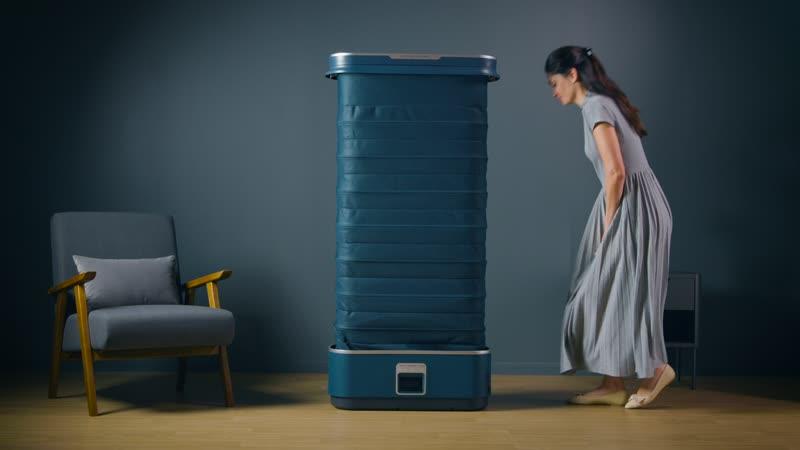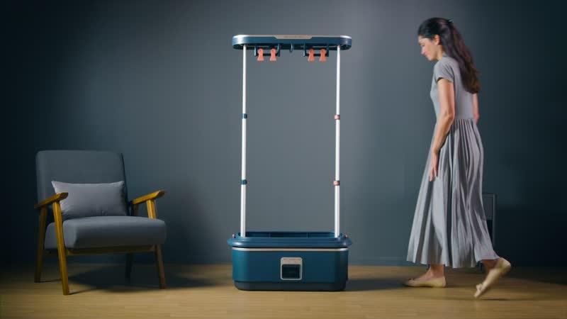 Este robot higienizador de prendas ha sido concebido para guardarlo sin esfuerzo, ya que cuenta con una compacta posición de almacenamiento que se retrae fácilmente y ocupa el mínimo espacio.