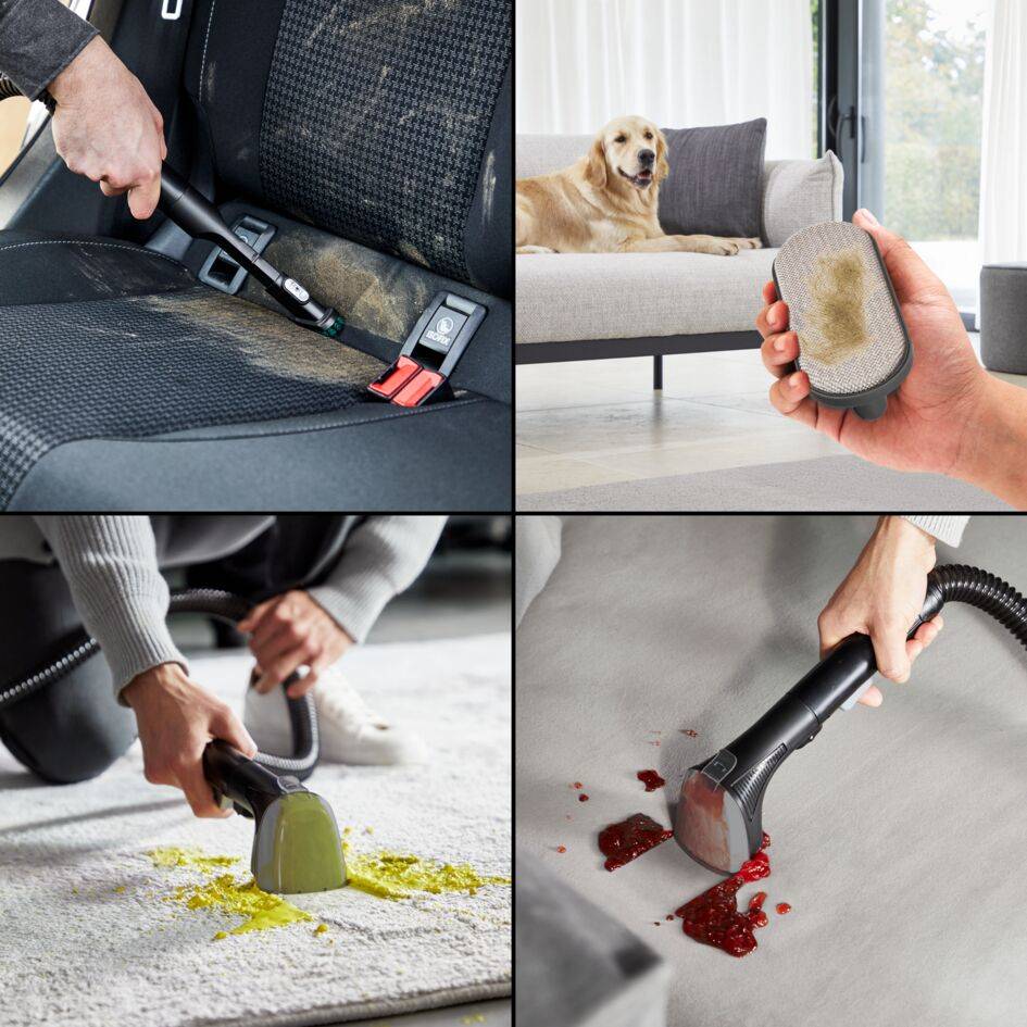 Clean It Compact viene con una solución limpiadora específica que ofrece todo lo que necesitas para eliminar manchas de forma rápida y eficaz. Esta máquina limpiadora de alto rendimiento combina un fregado y una succión potentes para que la limpieza diaria sea pan comido. Los accesorios incluidos y la solución limpiadora para mascotas también proporcionan la máxima comodidad.