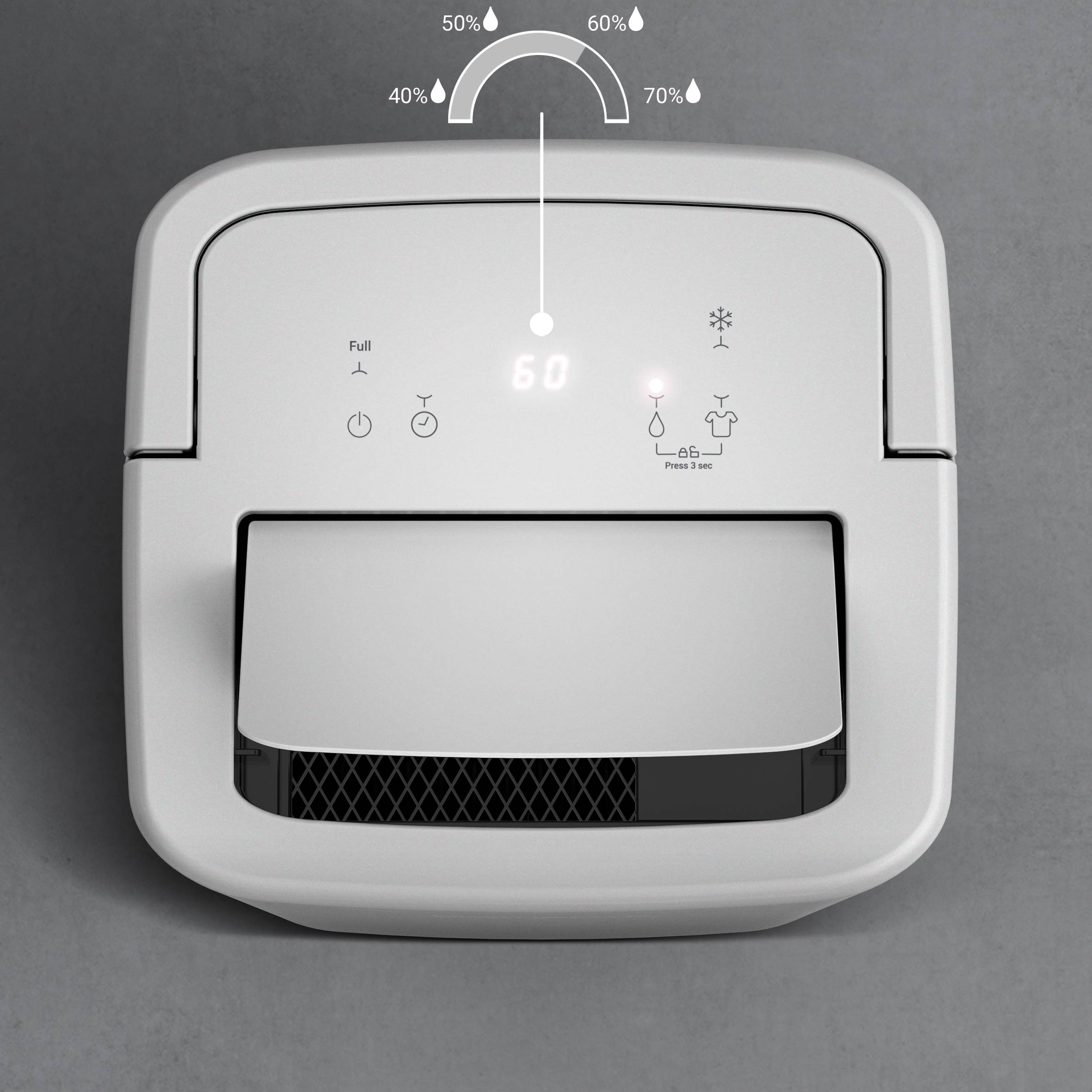 Mantener unos niveles adecuados de humedad es crucial para tu confort diario en casa y fomenta un ambiente interior agradable y saludable. Para garantizar un confort óptimo, se recomienda mantener los niveles de humedad interior entre el 40 y el 60 %. Para hacerlo, Rowenta te lo pone fácil con su indicador de humedad en tiempo real.