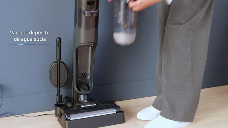 Mantén tu aspiradora limpia y lista para funcionar con la gran comodidad que ofrece nuestra función de autolimpieza. Una vez finalizada la limpieza y el vaciado el depósito de agua sucia, basta con pulsar un botón para iniciar un ciclo de autolimpieza de 90 segundos. Recomendamos dejar que el cepillo se seque por completo en el lugar designado de la bandeja de carga, así disfrutarás de una aspiradora reluciente y lista para empezar a limpiar siempre que la necesites.
