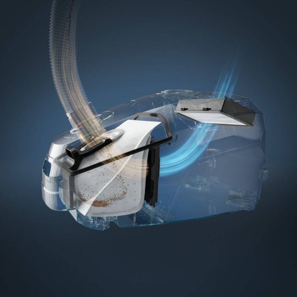 POTENCIA DE LIMPIEZA EXTRAORDINARIA: aspiradora que ofrece una impresionante potencia de succión con un motor de bajo consumo* con máximo de 900 W, para unos resultados perfectos en todo tipo de suelos y superficies COMPROMISO DE SOSTENIBILIDAD: fabricada con hasta un 70 % de plástico reciclado** y hasta un 82 % reciclable***, además de su embalaje ecológico 100 % reciclable*** con material de envoltura biodegradable FILTRACIÓN EXCEPCIONAL: filtración de categoría HEPA (mín. 99,98 %) para atrapar las partículas de polvo de hasta 0,3 micras y ofrecer un aire puro de calidad, ideal para las familias y para las personas más sensibles RADIO DE COBERTURA SUMAMENTE AMPLIO: gran radio de limpieza de 12 m, para cubrir grandes espacios cómodamente sin necesidad de desenchufar la aspiradora HIGIENE IMPECABLE: descubre un sistema de cambio de bolsas más fácil e higiénico que evita cualquier contacto con la suciedad gracias a la bolsa Hygiene+ DISEÑO COMPACTO INTELIGENTE: diseño ergonómico y compacto, para una gran comodidad de uso y un fácil almacenamiento PRÁCTICOS ACCESORIOS: accesorio para ranuras que permite conseguir un resultado óptimo en zonas de difícil acceso GARANTÍA DE REPARACIÓN DE 15 AÑOS: entrega rápida y asequible desde nuestros 6500 centros de reparación en todo el mundo, como parte de nuestro compromiso con la sostenibilidad y la durabilidad de nuestros productos