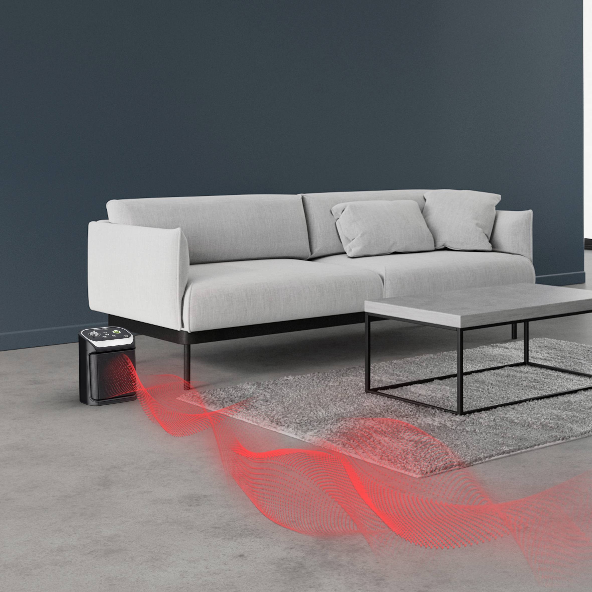 El calefactor cerámico Mini Excel Eco Safe proporciona un calentamiento potente con un diseño compacto y una tecnología cerámica duradera. Equipado con una protección frente al sobrecalentamiento y una función de parada automática para fallos, es tan seguro como discreto. Sus dos velocidades de calentamiento ajustables son perfectas para cualquier situación: para un uso prolongado, elija la opción más baja, que le proporcionará un calor moderado y agradable, o bien seleccione la opción más alta para un calentamiento más intenso y rápido. Gracias a la función de energía eco, el calefactor cerámico Mini Excel Eco Safe también es muy eficiente, pues ahorra hasta un 50% de energía.* Gracias a su diseño reducido y ligero, puede acompañarle a donde quiera que vaya. *En comparación con la opción de termostato máx./a plena potencia (escenario de uso común).