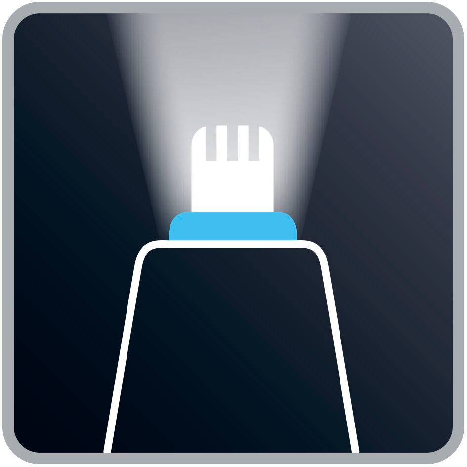 Con el cortapelos específico para nariz y orejas, despídete del vello más antiestético de la nariz y las orejas. Su sistema de cuchilla giratoria de 360 ° facilita el corte seguro e indoloro del vello, proporcionando unos resultados perfectos con cada uso. Su capacidad para cortar hasta el vello más diminuto es inigualable: gracias a la ingeniosa tecnología Vision, el área de corte se va iluminando para que no se escape ni un solo pelo. Este cortapelos siempre está listo para que lo uses dónde y cuándo quieras, ya que es totalmente resistente al agua para facilitar su limpieza y tiene una autonomía de hasta 3 horas.