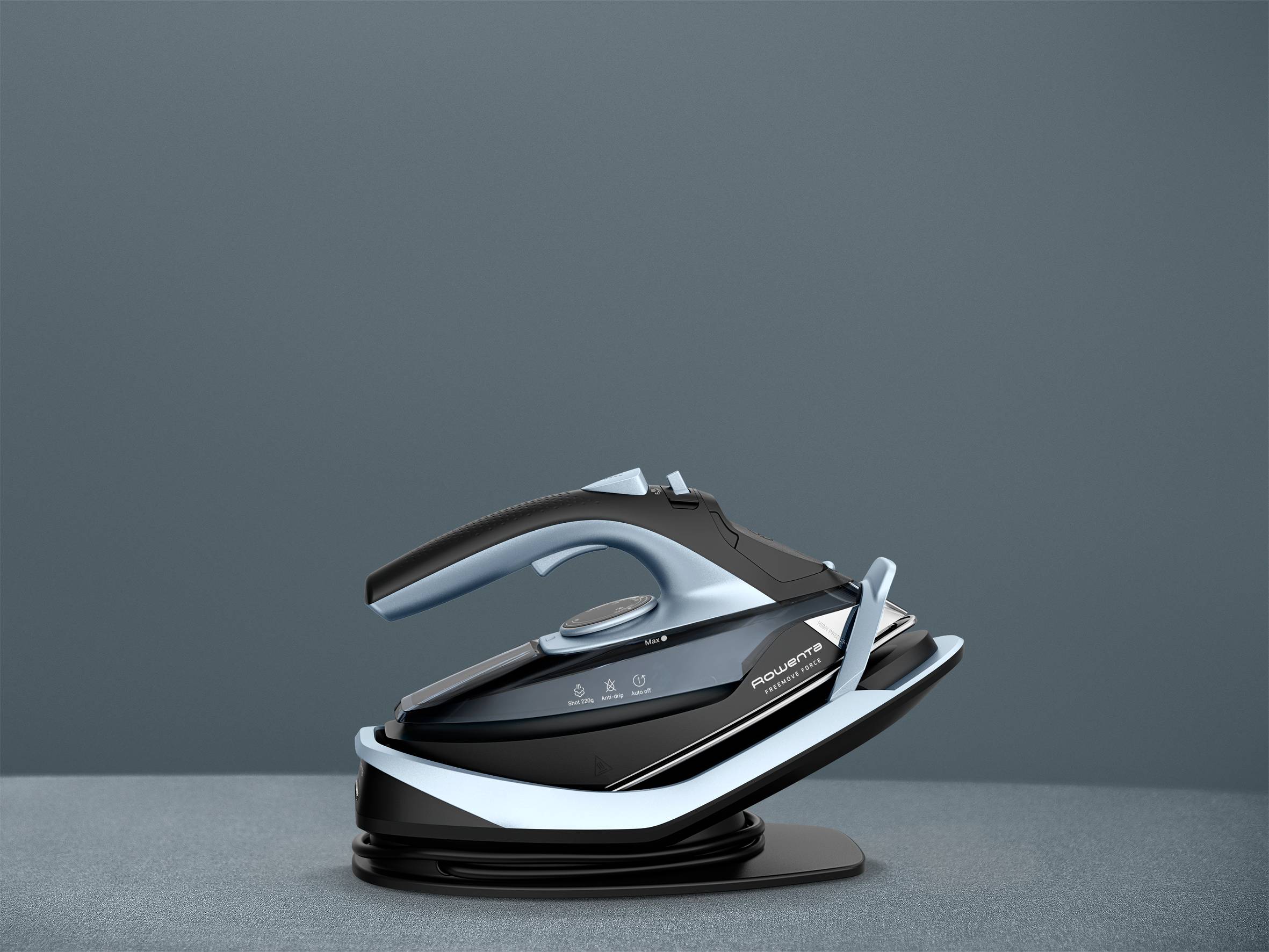 Freemove Force de Rowenta, Plancha de Vapor Sin Cable, 2600 W, Golpe de Vapor 220 g/min, Azul Claro y Negro