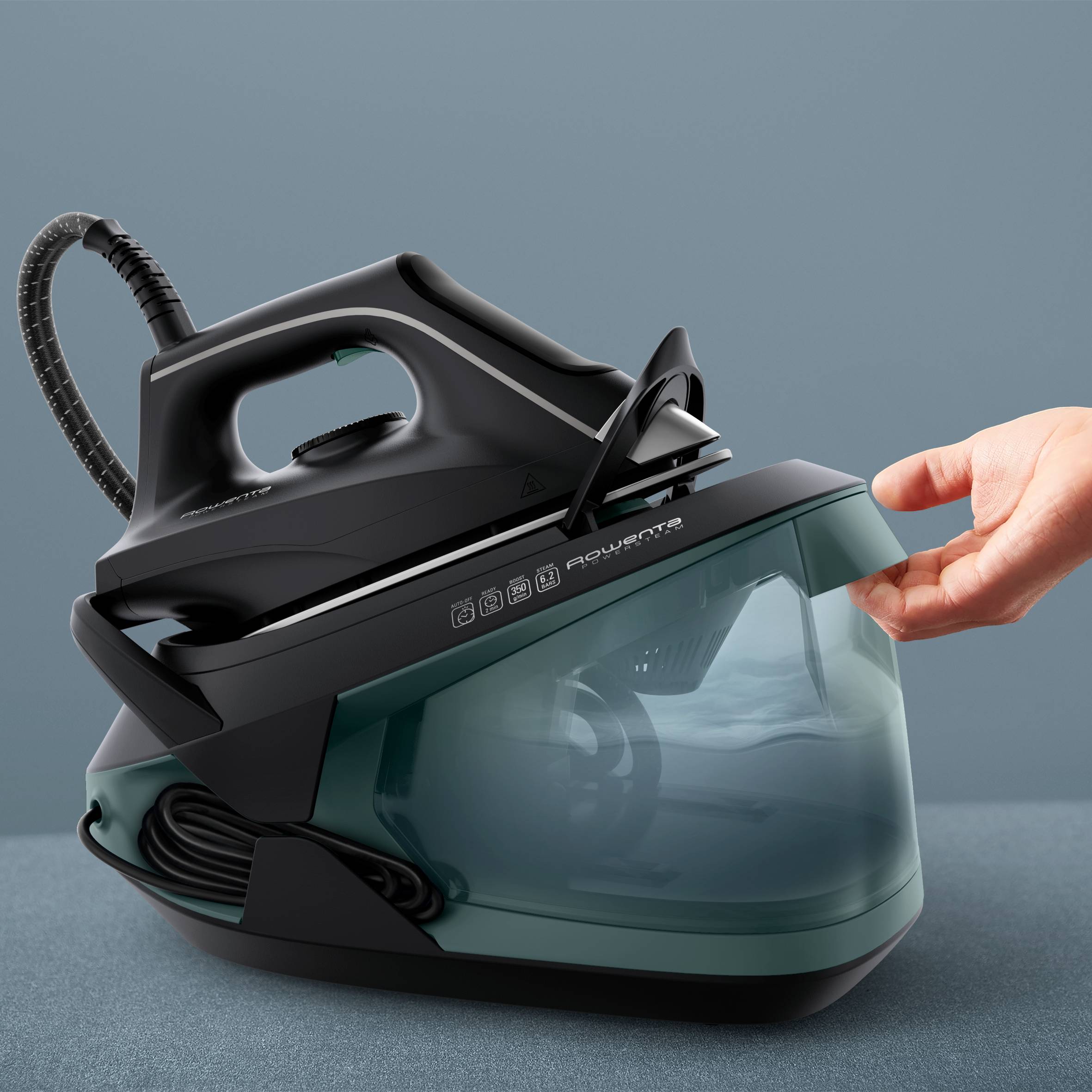 Tu kit Powersteam de Rowenta, Centro de planchado de alto rendimiento, Salida de vapor continua de 120 g/min, golpe de vapor de 350 g/min