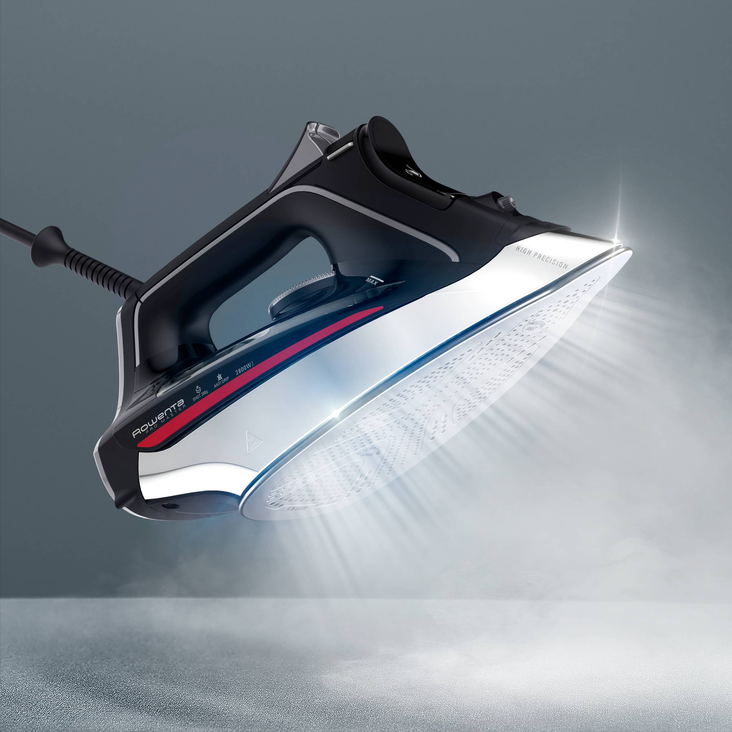 Pro Master de Rowenta, Plancha de vapor, Gran distribución del vapor, Golpe de vapor de 200 g/min, Negra