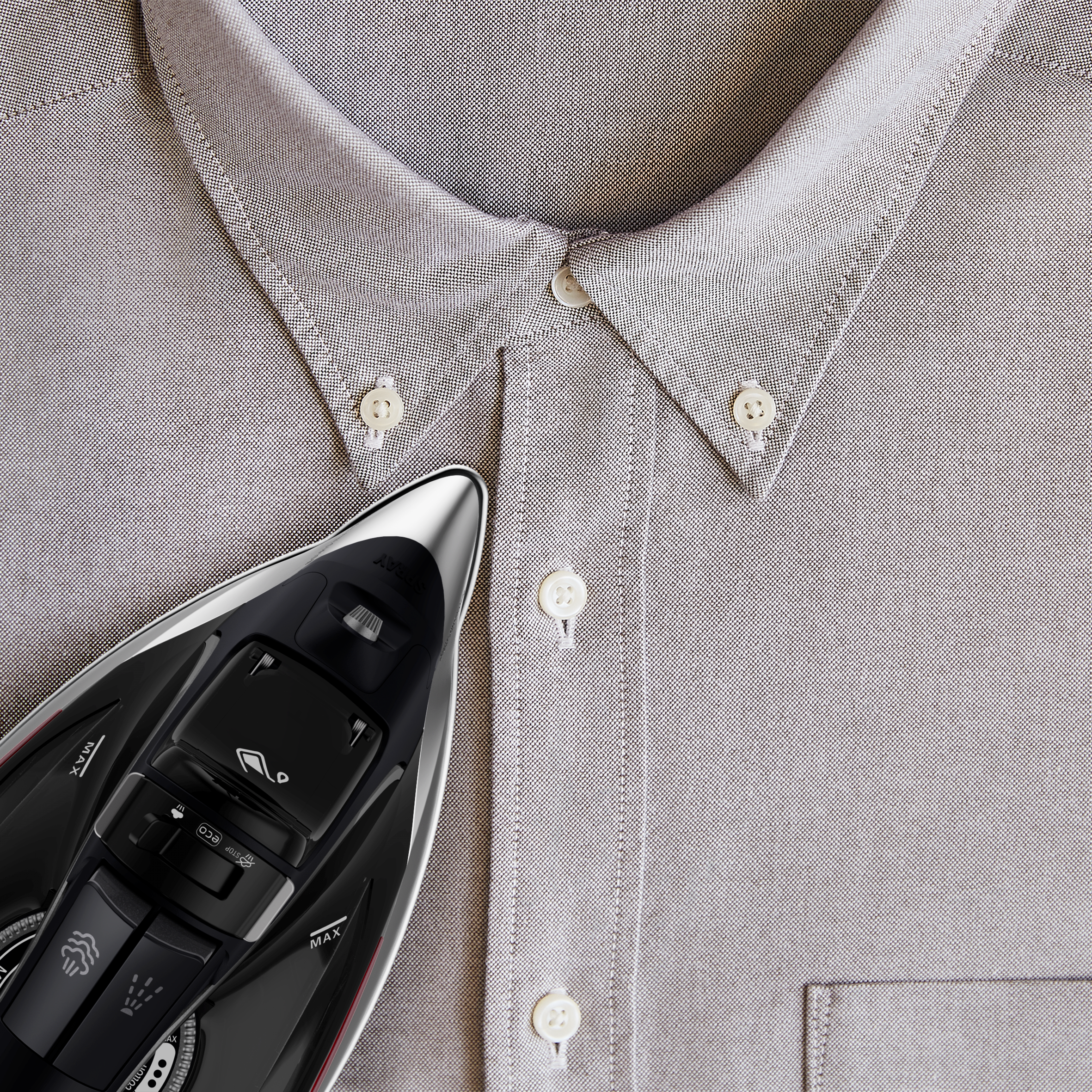 Pro Master de Rowenta ofrece un planchado perfecto día tras día con la mejor distribución de vapor del mercado.* Descubre una plancha de vapor que pone el planchado de alta eficiencia a tu alcance: una salida de vapor continua de hasta 50 g/min, un golpe de vapor de 200 g/min para las arrugas más difíciles, una punta de precisión para las zonas de difícil acceso y mucho más. *Comparado con las suelas de las 10 más vendidas del mercado de planchas de vapor de EE. UU. (panel independiente, valor en ventas, 12 meses con finalización el 4/2020, mercado de EE. UU.)