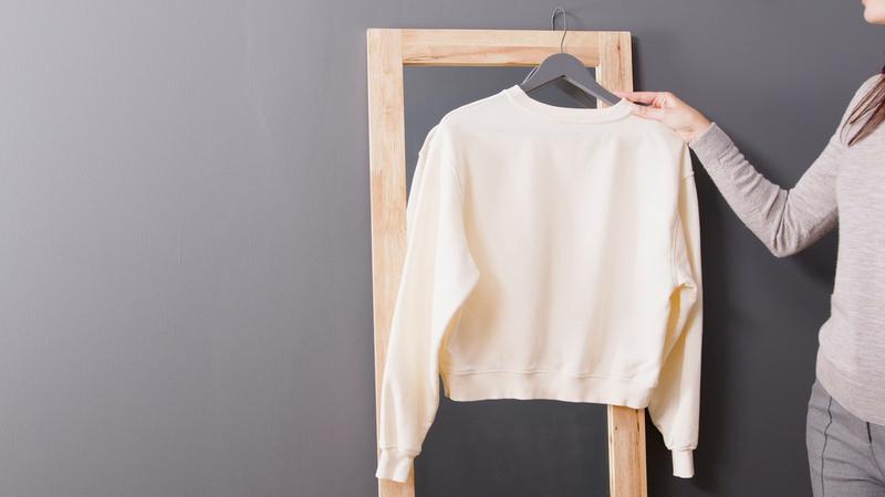 Estira la prenda con una mano y vaporiza con la otra, en contacto con la ropa, de arriba abajo o con el ángulo que requieras.