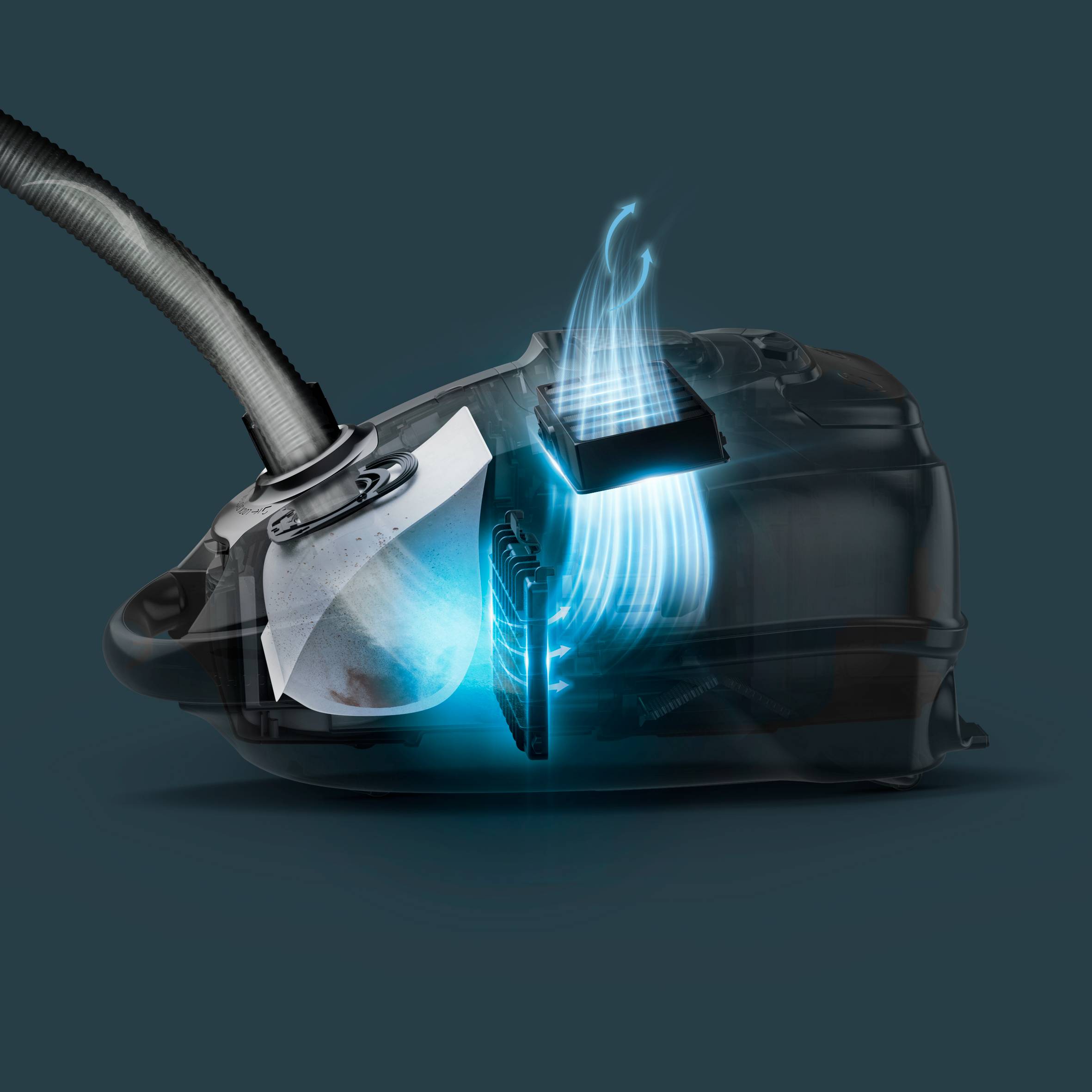 Beneficios de Silence Force Effitech de Rowenta, la aspiradora más silenciosa de Rowenta con solo 57 dB(A), consumo superreducido, filtración de categoría HEPA, radio de acción de 12 m, cambio de bolsa higiénico, RO7473EA