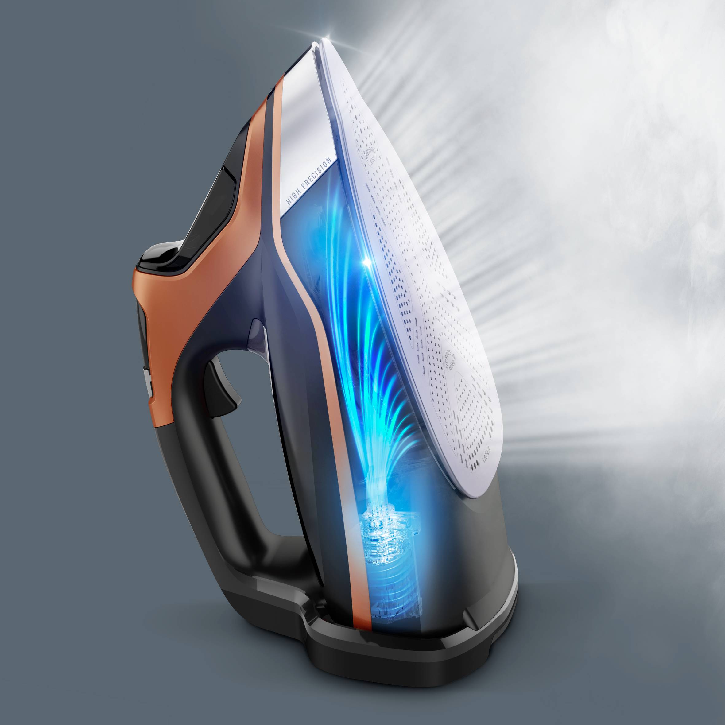 Nuestra suela patentada Microsteam 400 HD Laser ofrece una difusión óptima del vapor y resultados profesionales día tras día, con 400 agujeros de vapor activos que cubren todas las zonas donde se necesita. La distribución del vapor va acompañada de durabilidad, con una suela acabada con láser que garantiza una excelente resistencia a los arañazos y un deslizamiento impecable, para ofrecer un rendimiento duradero y un cuidado de las prendas más fácil que nunca.