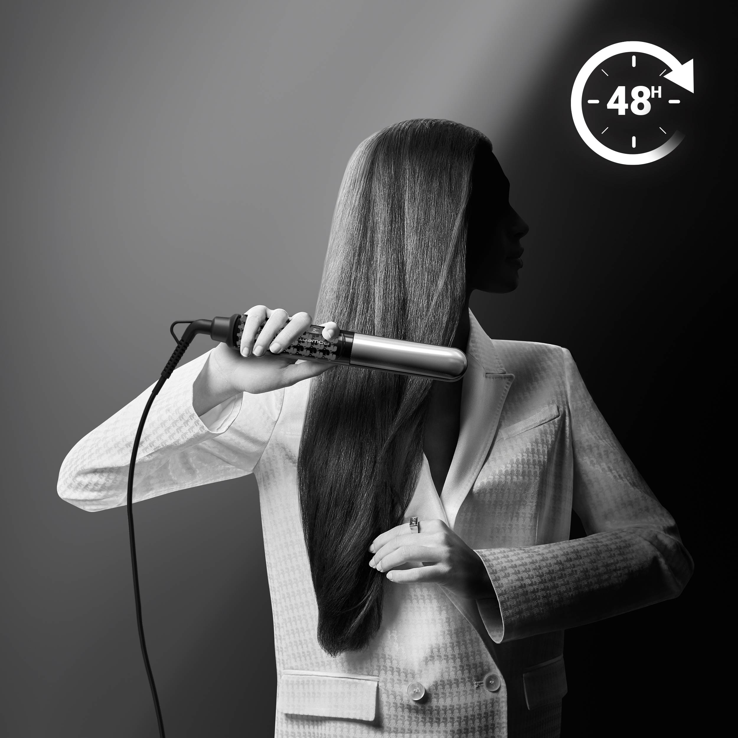 Descubre Rowenta x Karl Lagerfeld Thermostyle, una plancha de pelo 2 en 1 que facilita unos rizos magníficos y un alisado suave. Crea unos rizos con un 40 % más de elasticidad con total facilidad gracias a la óptima distribución del calor. Añade un toque de glamur y brillo a tu look con el sistema iónico y el revestimiento cerámico, para lucir un extra de brillo en tu día a día.