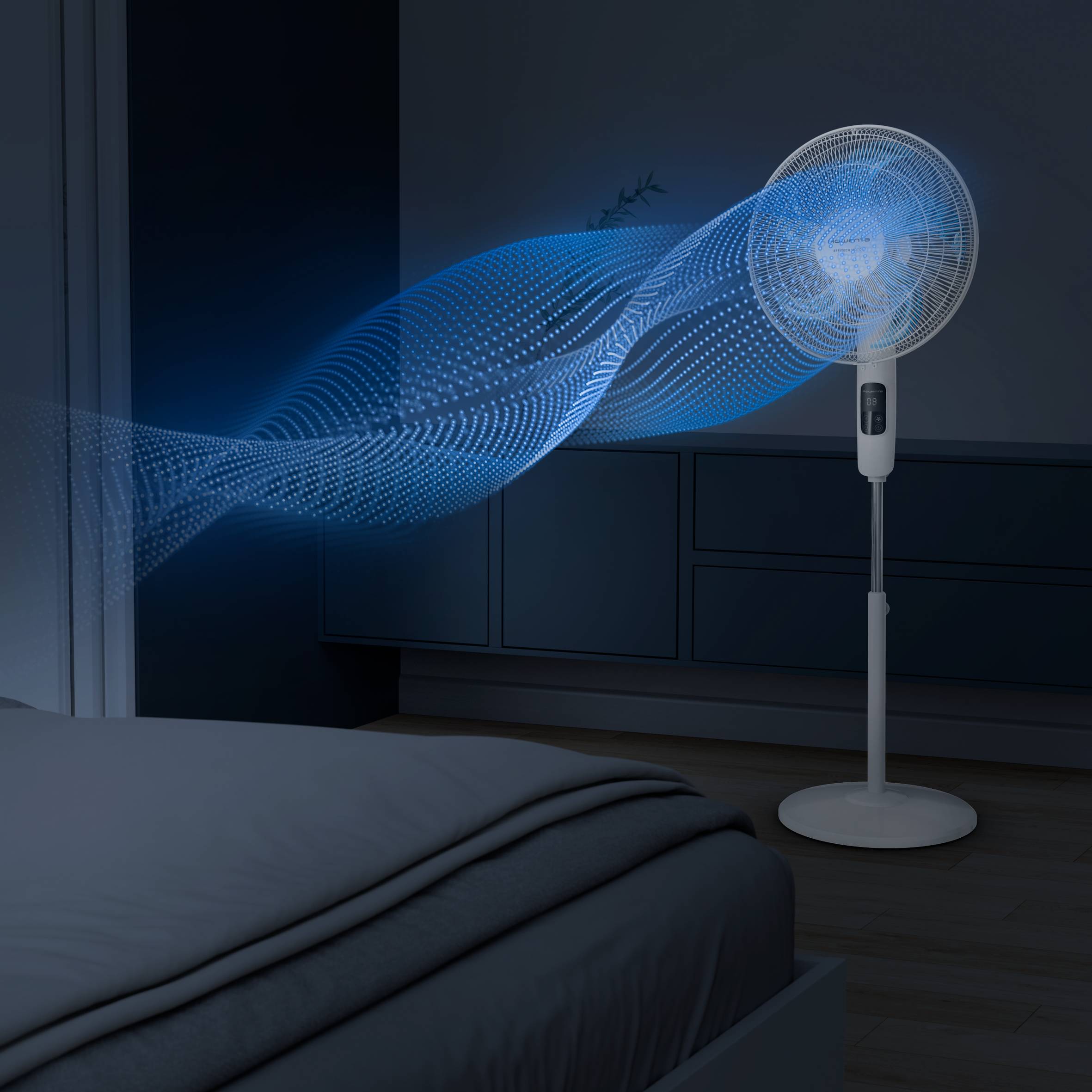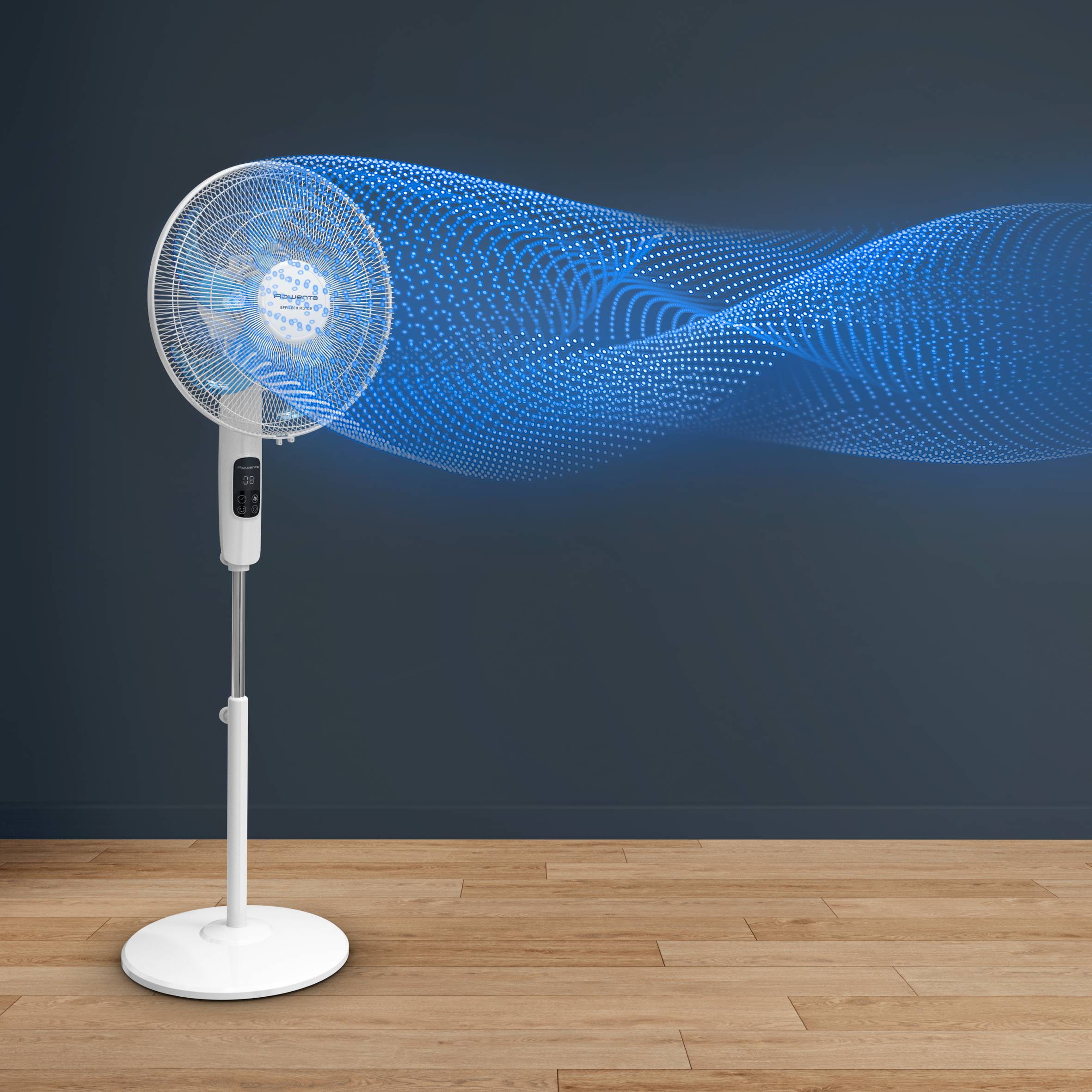 Gracias a nuestro nuevo motor Effitech, podrás disfrutar de un extraordinario y silencioso flujo de aire durante todo el verano, lo que se traduce en noches apacibles y reconfortantes. Su nueva tecnología ofrece toda la tecnología de alto rendimiento que esperas de Rowenta, a la par que consume un 55 % menos de energía*.