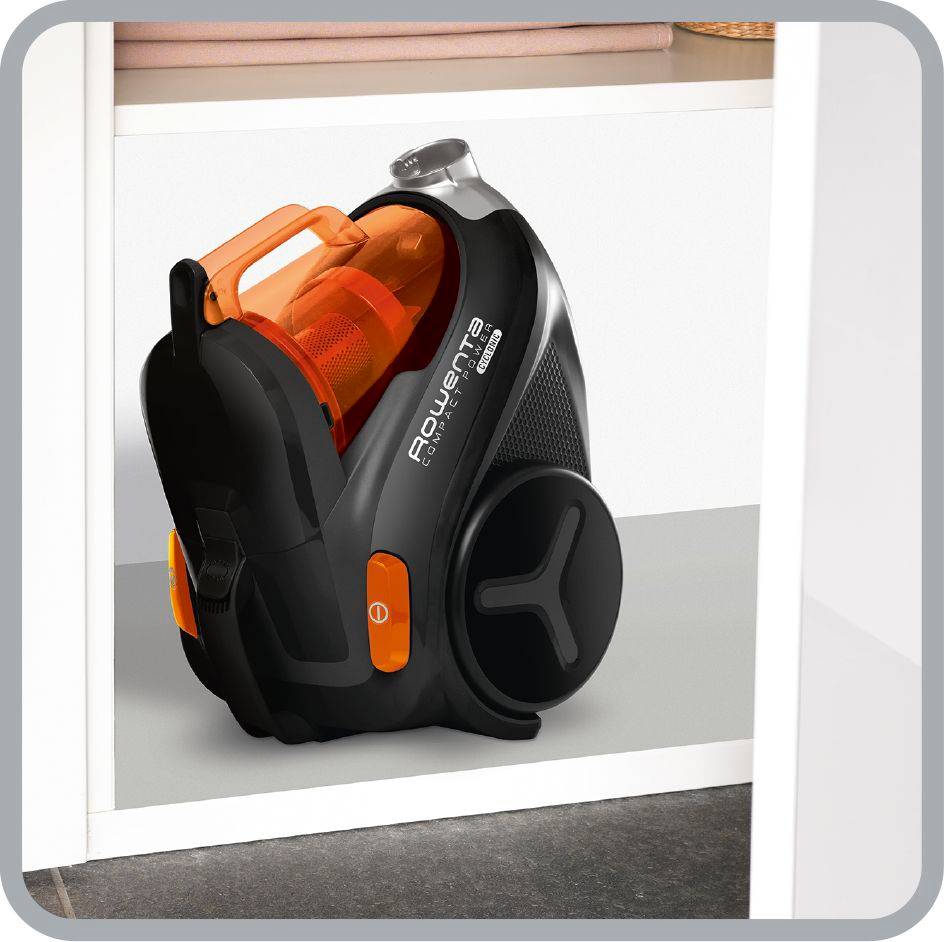 Combinando sus eficientes resultados y su óptimo diseño en una herramienta de limpieza compacta y fácil de usar, la aspiradora Compact Power™ Cyclonic ofrece un rendimiento excepcional. El nuevo cabezal de aspiración, de gran potencia y eficiencia, limpia la suciedad incrustada y se enfrenta a las suciedad con el mejor rendimiento en suelos duros de su clase. Su tecnología monociclónica avanzada proporciona una filtración a dos niveles que captura el 99,98% del polvo aspirado para una limpieza impecable, con un uso energético que se reduce hasta un 50%*. Su rendimiento se ve igualado por su excepcional comodidad y facilidad de uso: un formato compacto para un almacenamiento fácil, un diseño ergonómico mejorado, y el sistema Clean Express para una limpieza y mantenimiento sin esfuerzo. *En comparación con una gama anterior de aspiradoras Rowenta de 2000W.