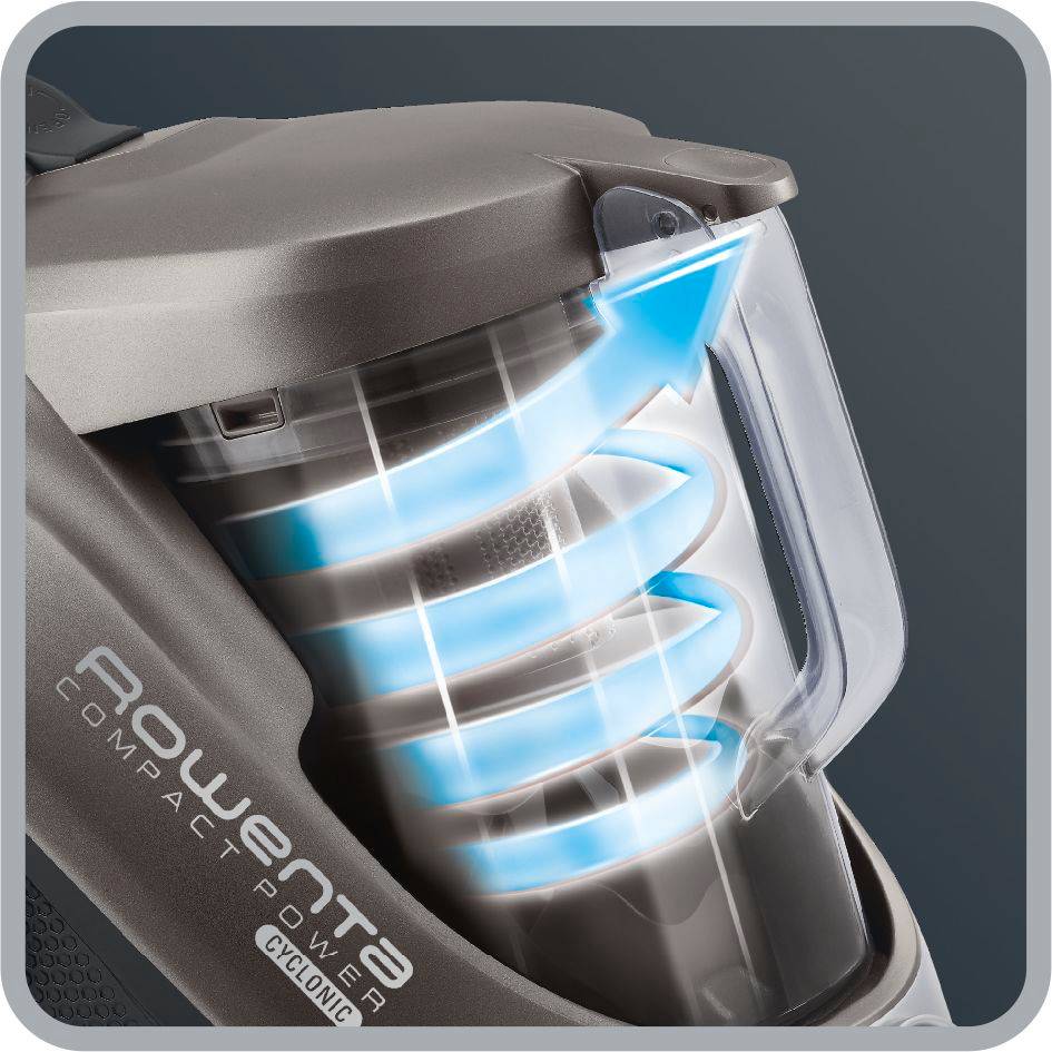 Combinando sus eficientes resultados y su óptimo diseño en una herramienta de limpieza compacta y fácil de usar, la aspiradora Compact Power™ Cyclonic ofrece un rendimiento excepcional. El cabezal de aspiración de gran eficiencia, limpia la suciedad en profundidad y aspira sin dificultad grandes cantidades de suciedad con un rendimiento inmejorable en suelos duros. Su tecnología monociclónica avanzada proporciona una filtración a dos niveles que captura el 99,98% del polvo aspirado para una limpieza impecable, con un uso energético que se reduce hasta un 50%*. Diseñado específicamente para satisfacer las necesidades de quienes tienen mascotas, el cepillo Mini Turbo Brush facilita la limpieza de muebles, eliminando el pelo animal y consiguiendo una mayor higiene. Gran rendimiento combinado con una comodidad excepcional y facilidad de uso: un formato compacto, un diseño ergonómico mejorado y el sistema Clean Express para una limpieza sin esfuerzo. A partir de ahora, ¡el rendimiento estará en tus manos! *En comparación con una gama anterior de aspiradores Rowenta de 2000W